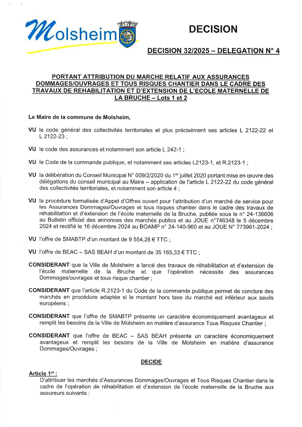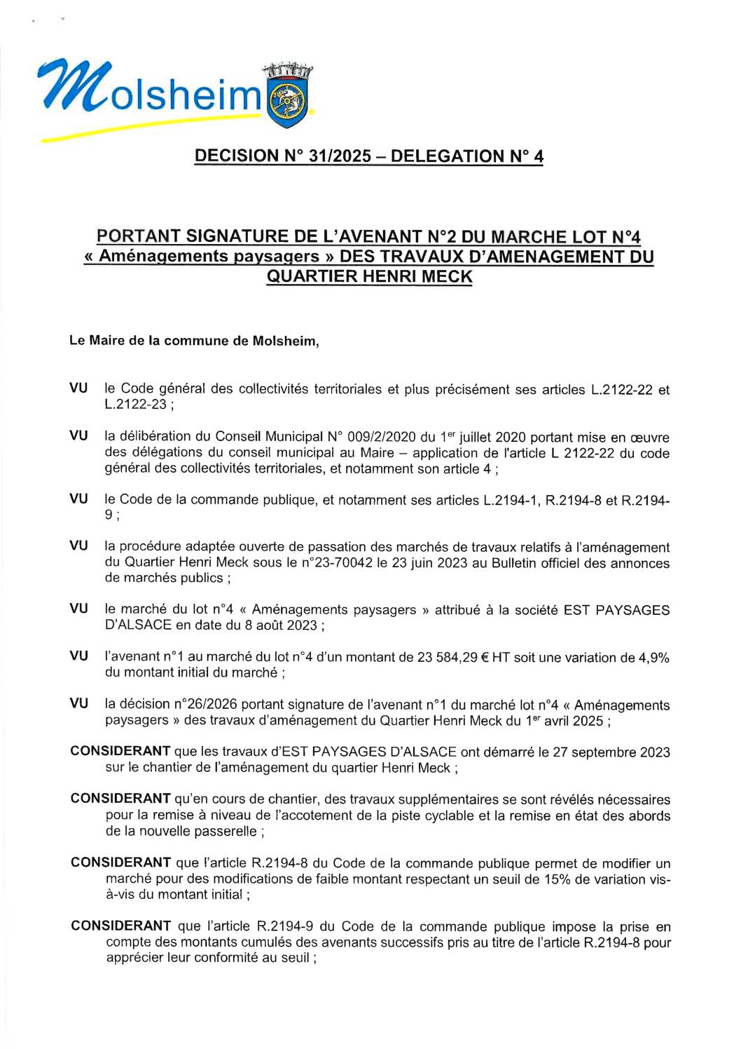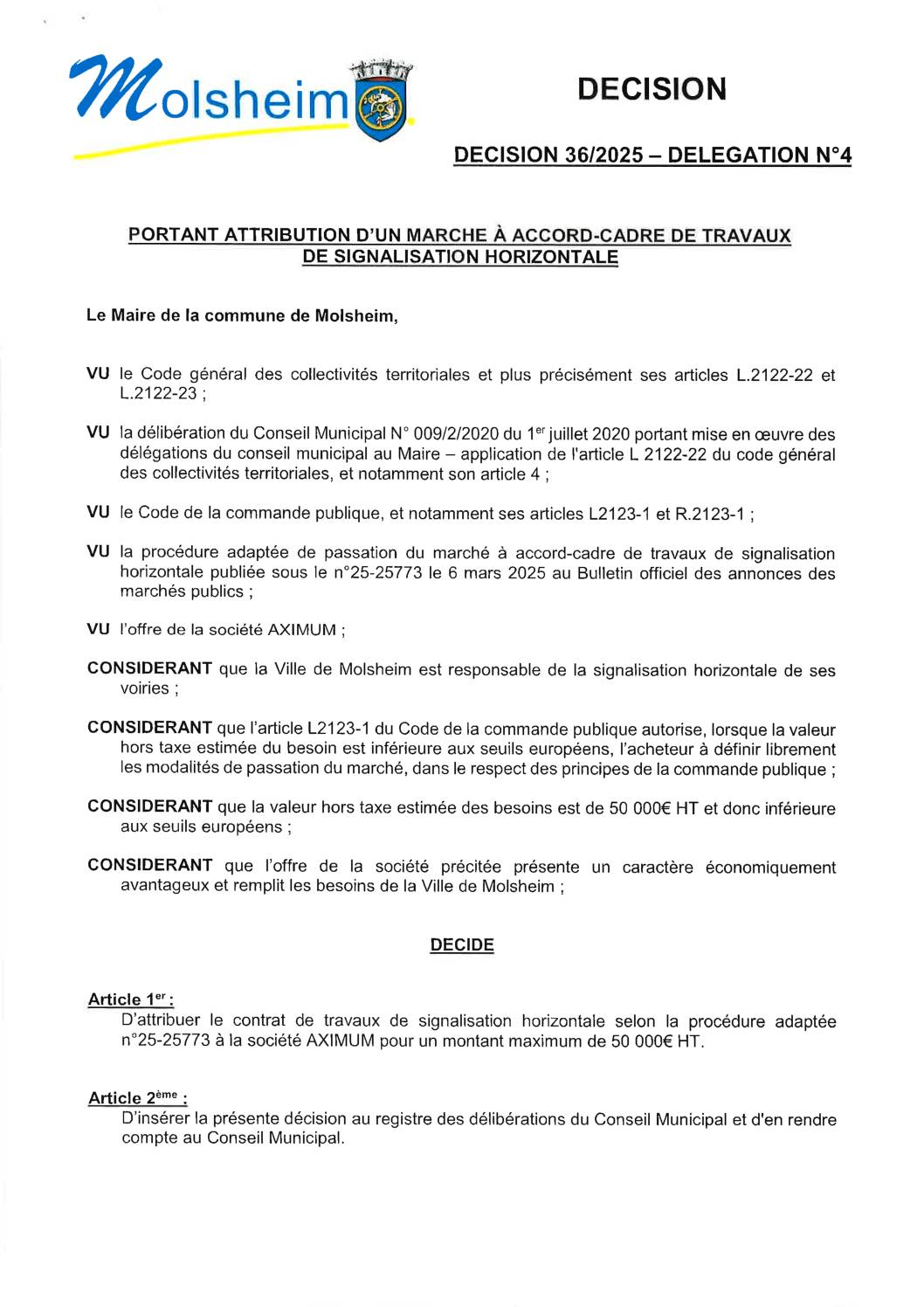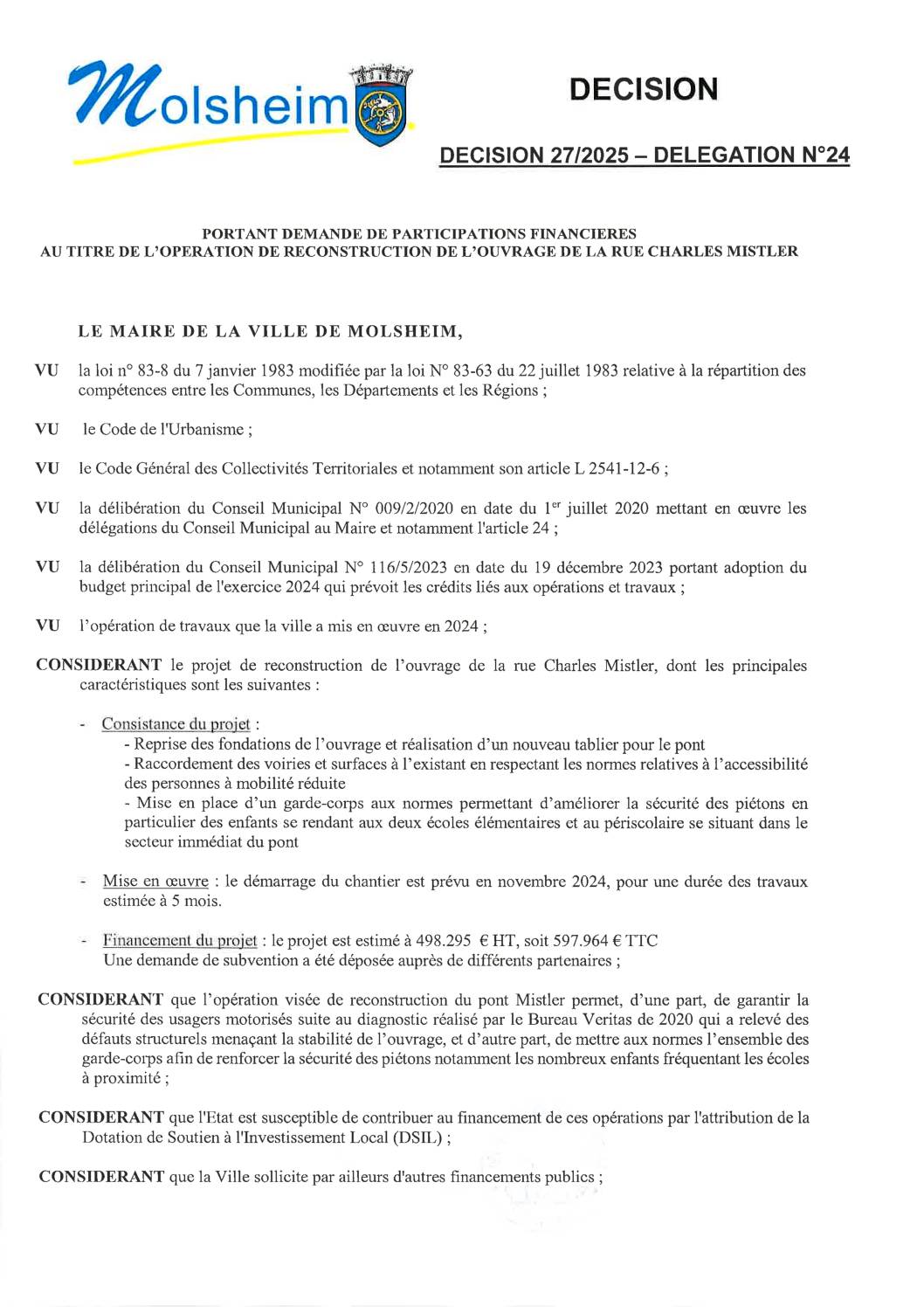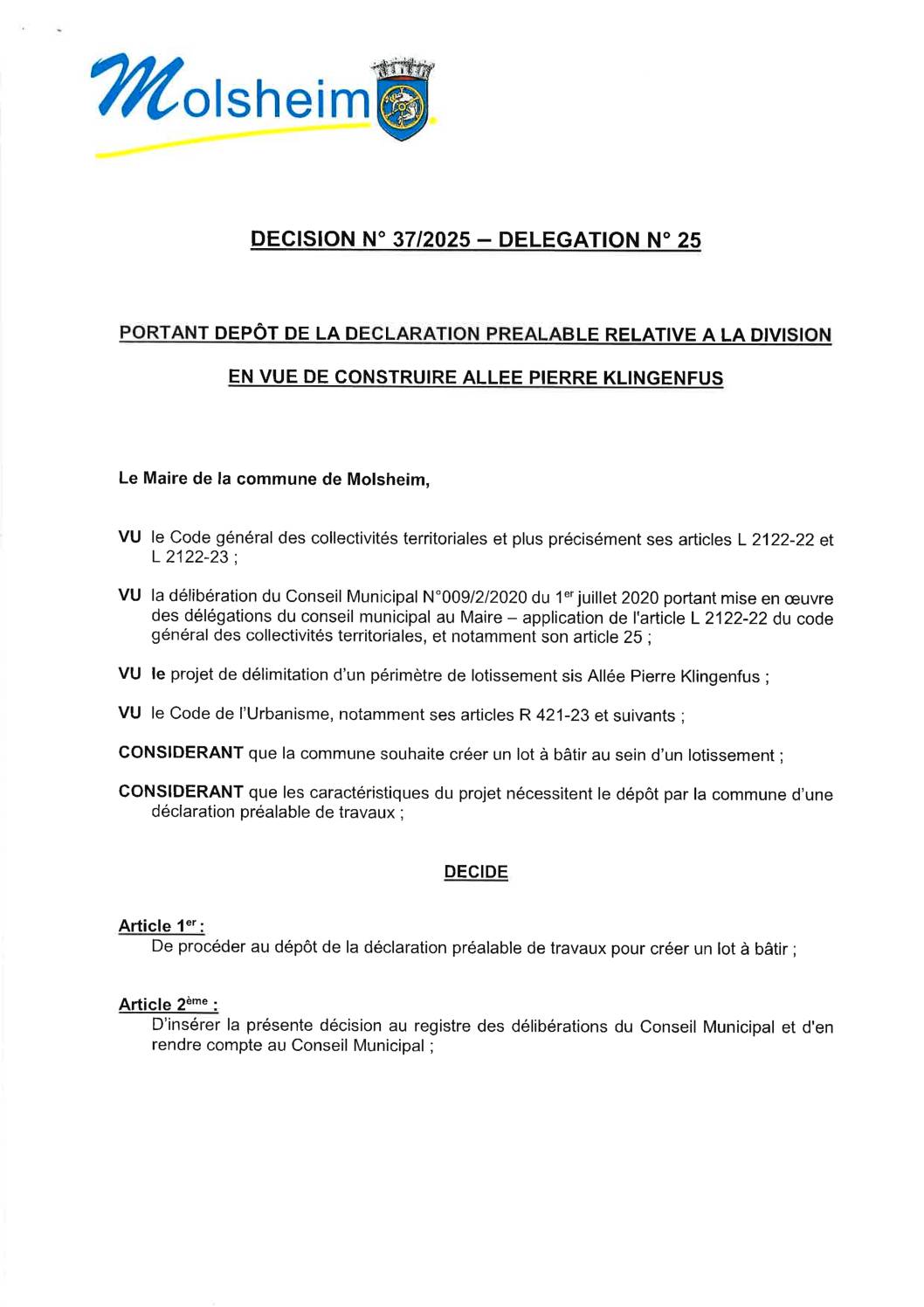 DÉCISION 37/2025 – DÉLÉGATION N”25 PORTANT DÉPÔT DÉCLARATION PRÉALABLE CONSTRUCTION ALLÉE PK 09/05/2025