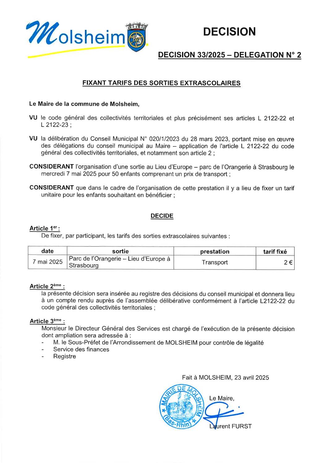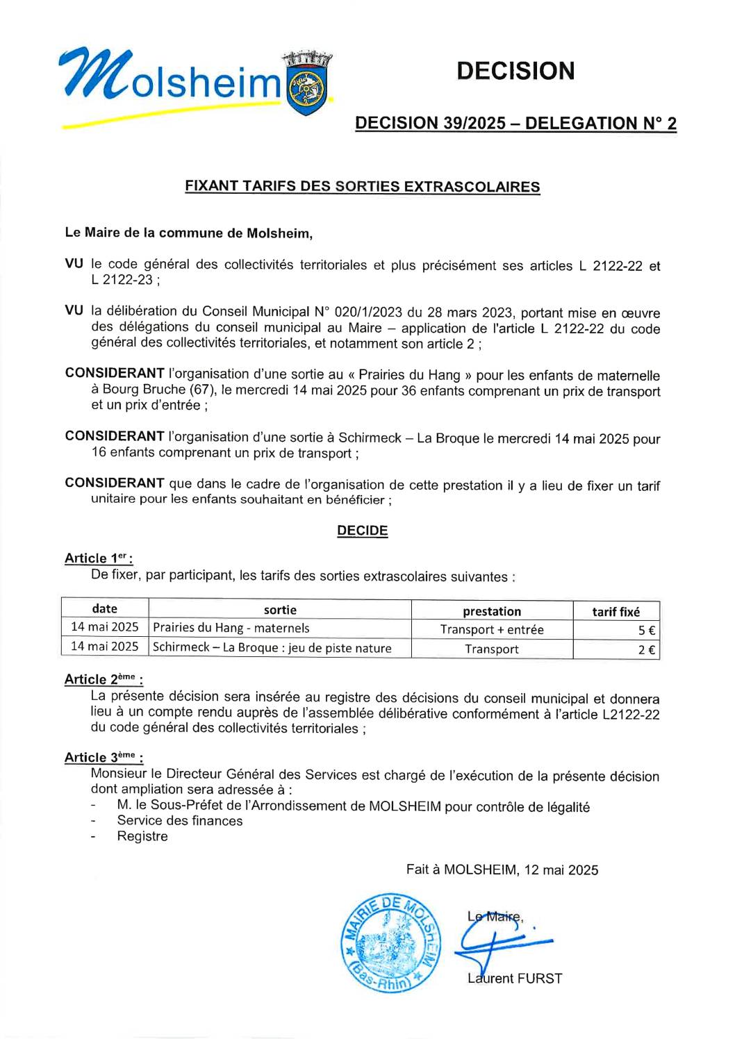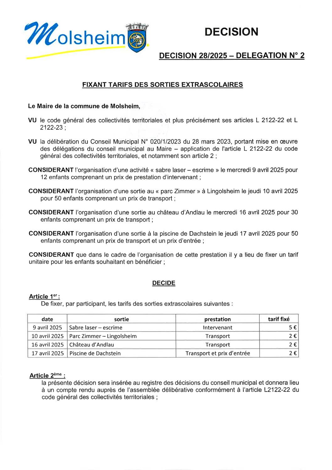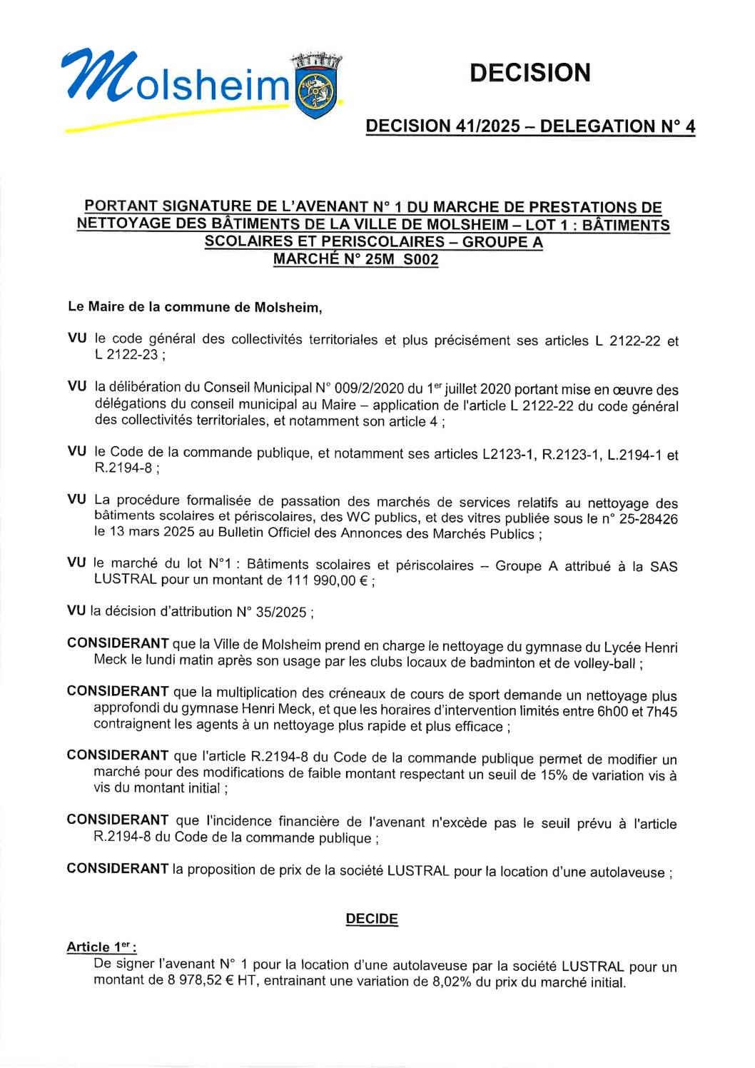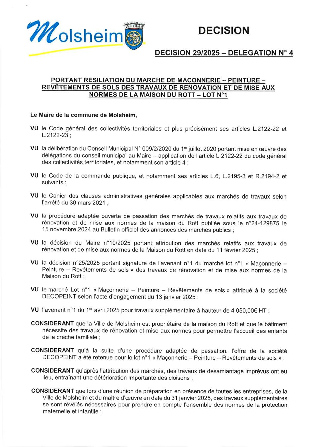 DÉCISION 37/2025 – DÉLÉGATION N”25 PORTANT DÉPÔT DÉCLARATION PRÉALABLE CONSTRUCTION ALLÉE PK 09/05/2025