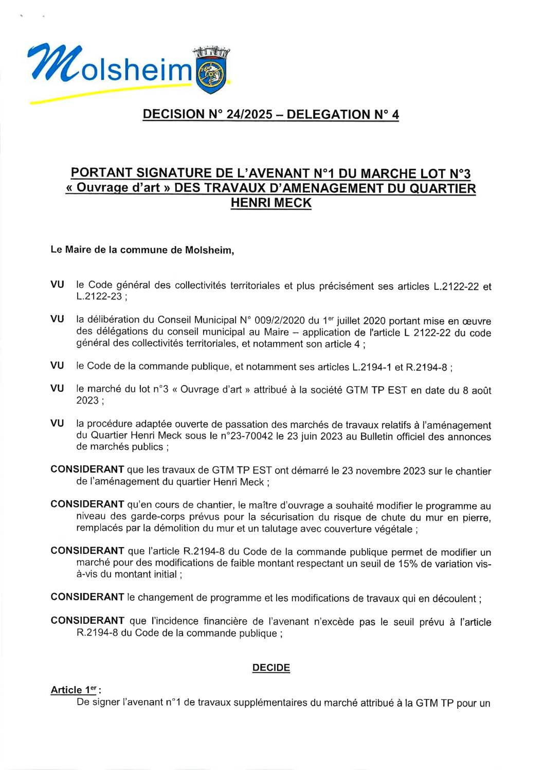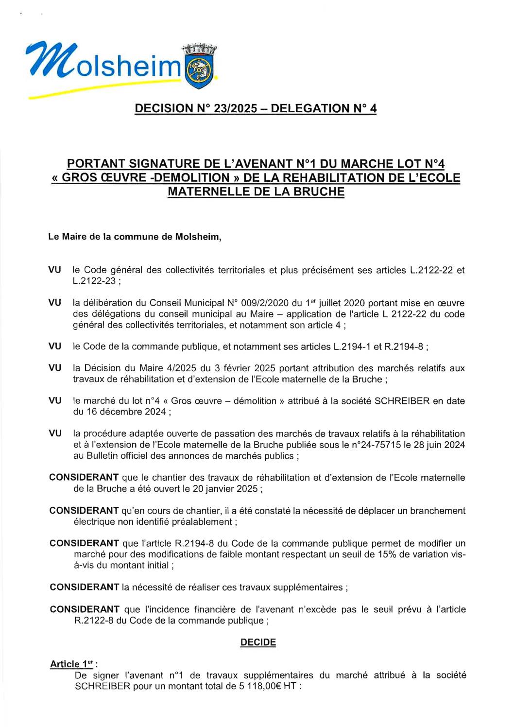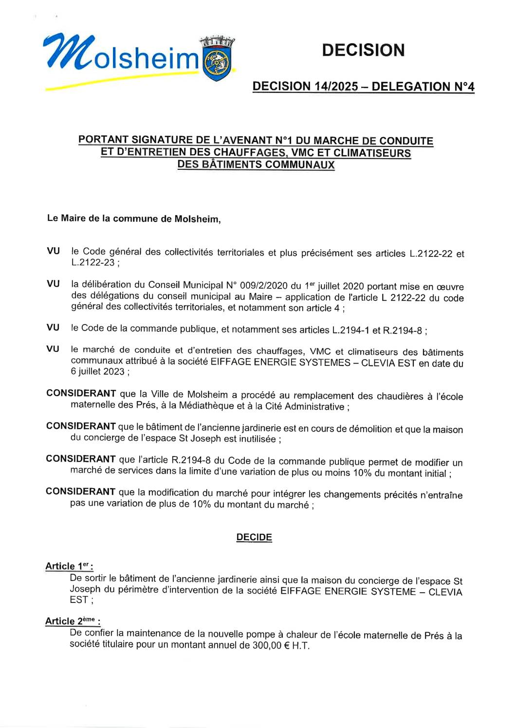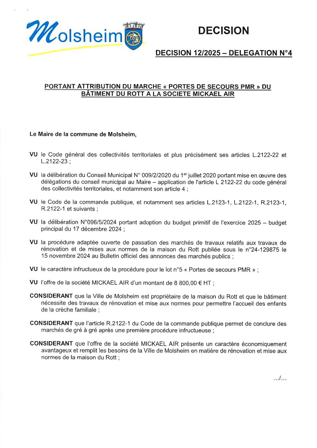 DÉCISION 15/2025 – DÉLÉGATION N”4 PORTANT ATTRIBUTION DES MARCHÉS DÉSAMIANTAGE ET DÉMOLITION 17/02/2025