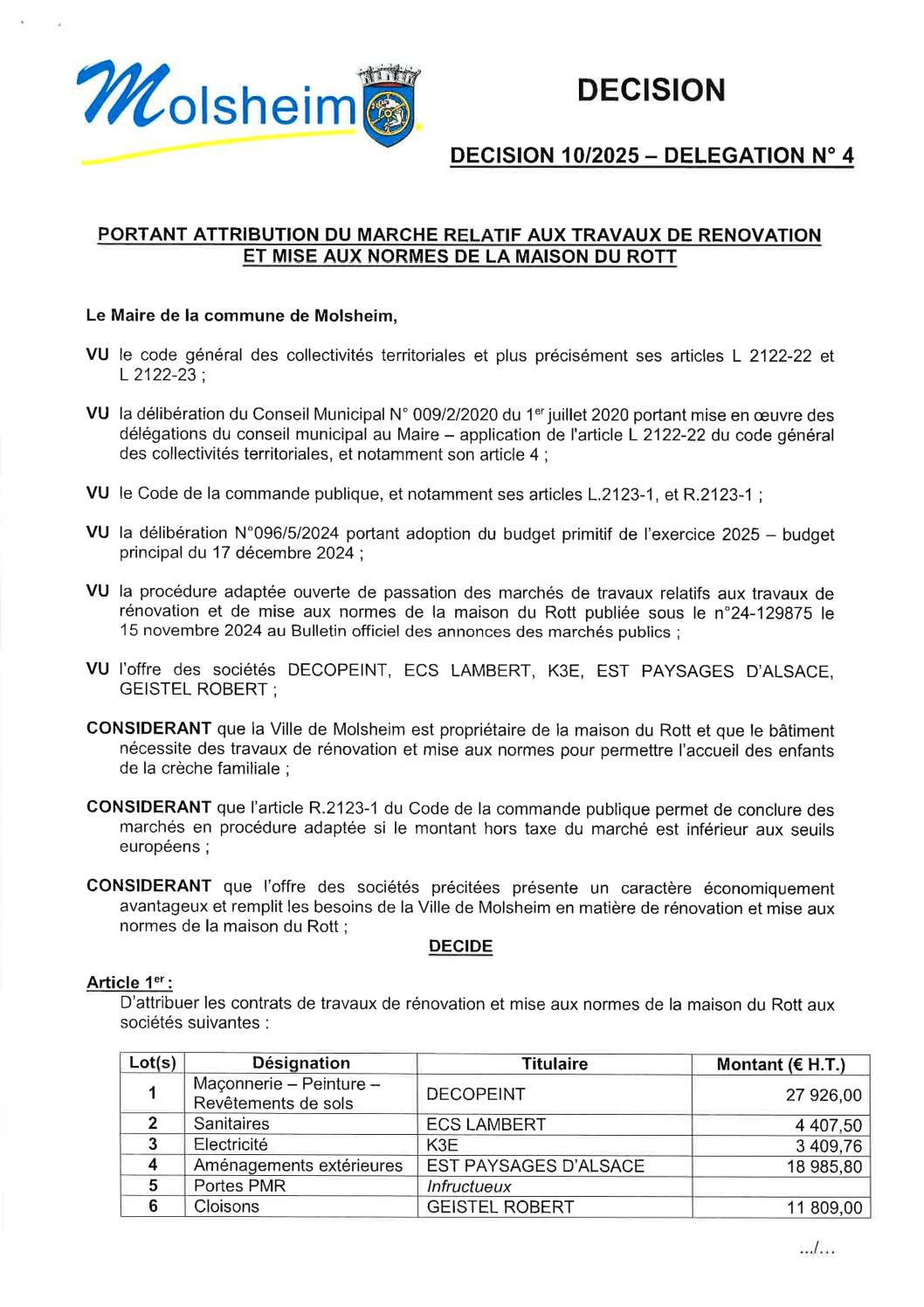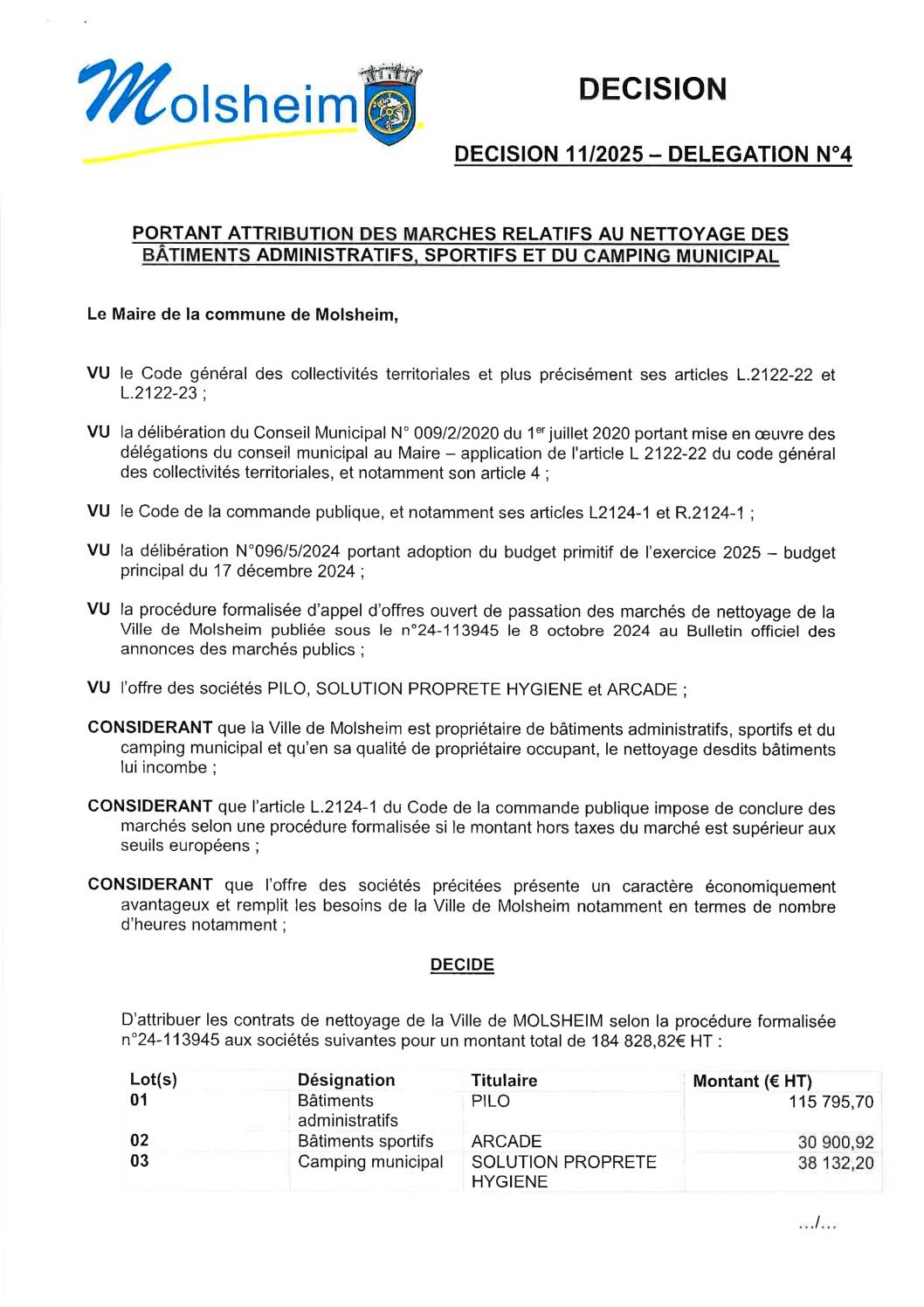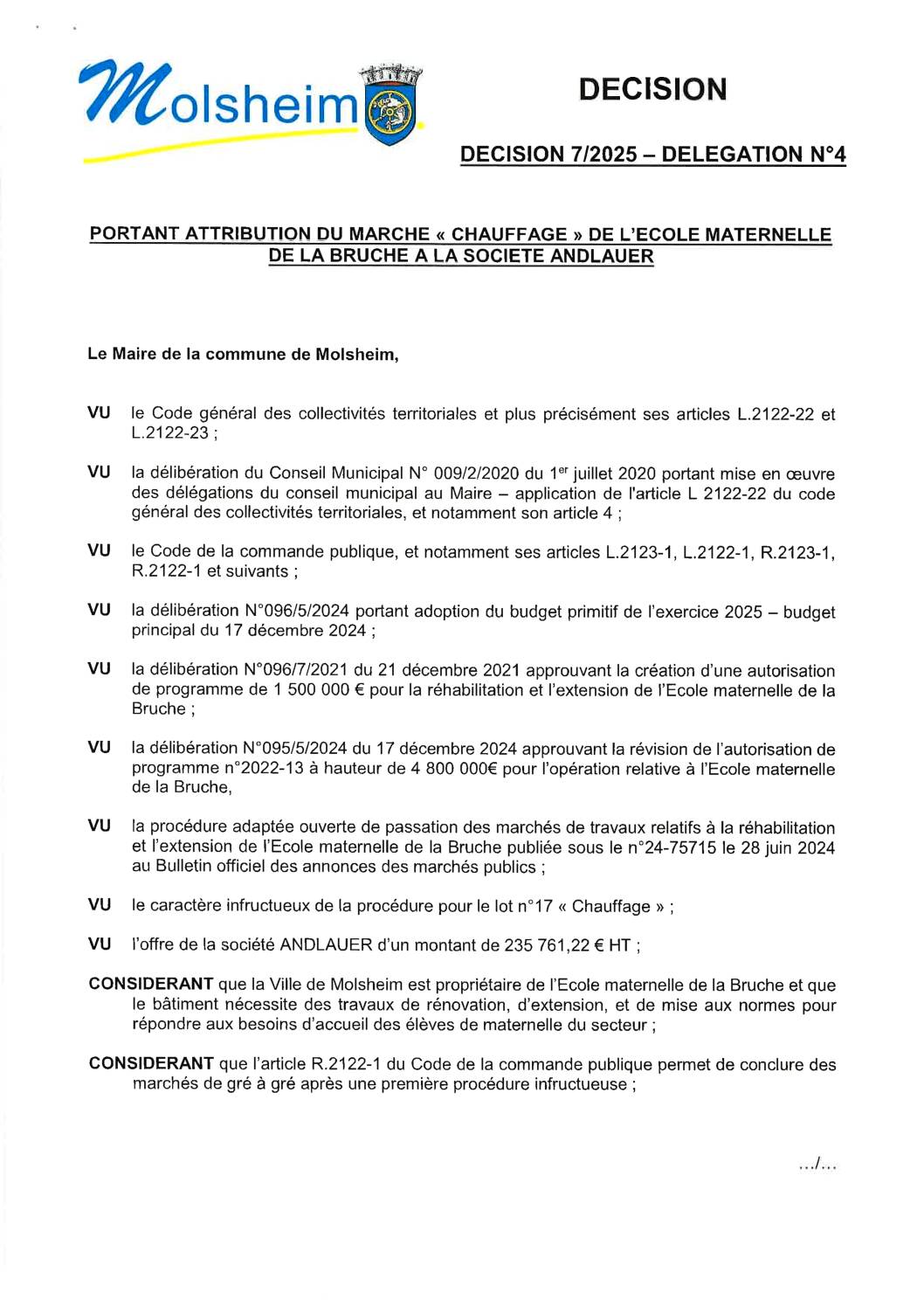 Vous êtes ici › Accueil • Ma mairie & mes démarches • Affichage légal • Décisions